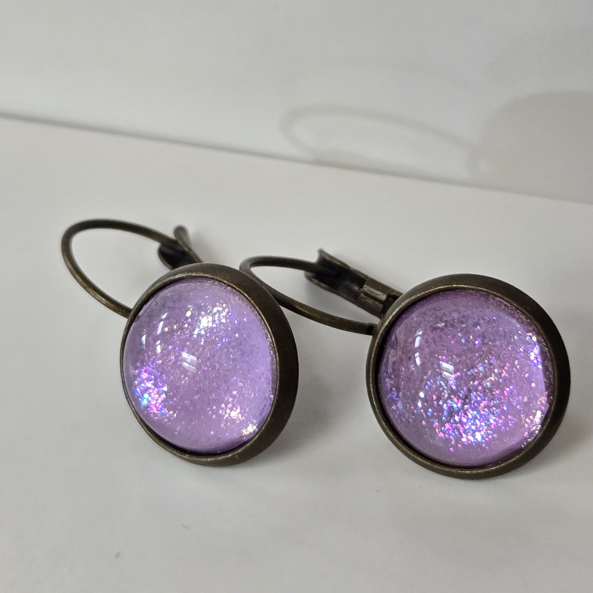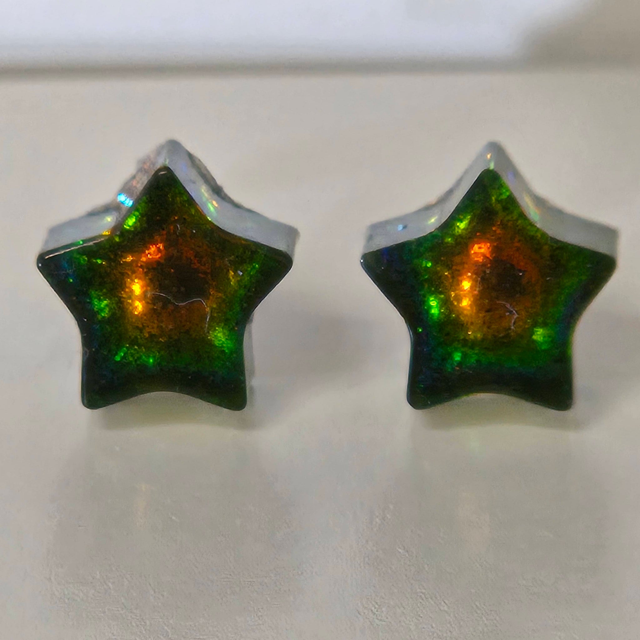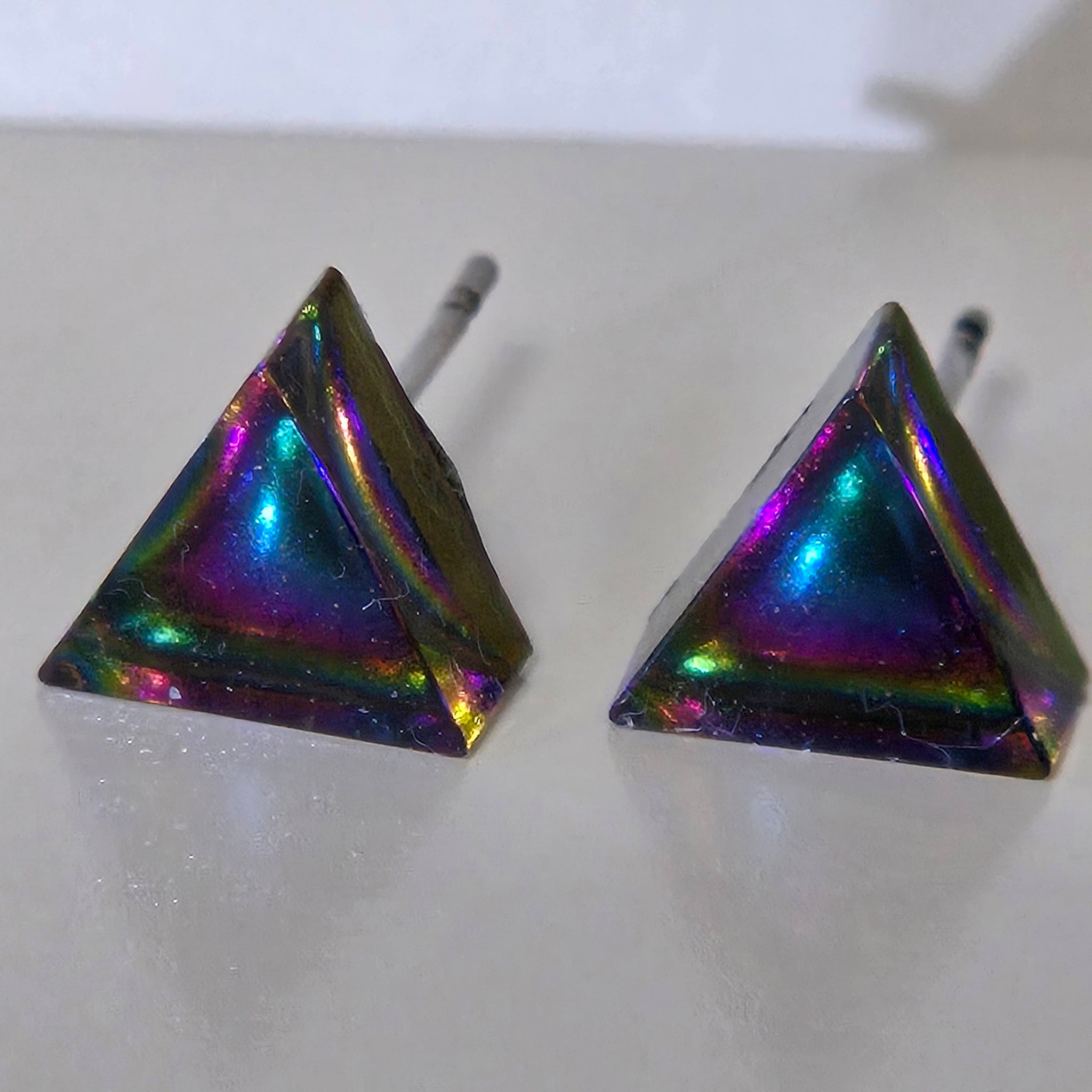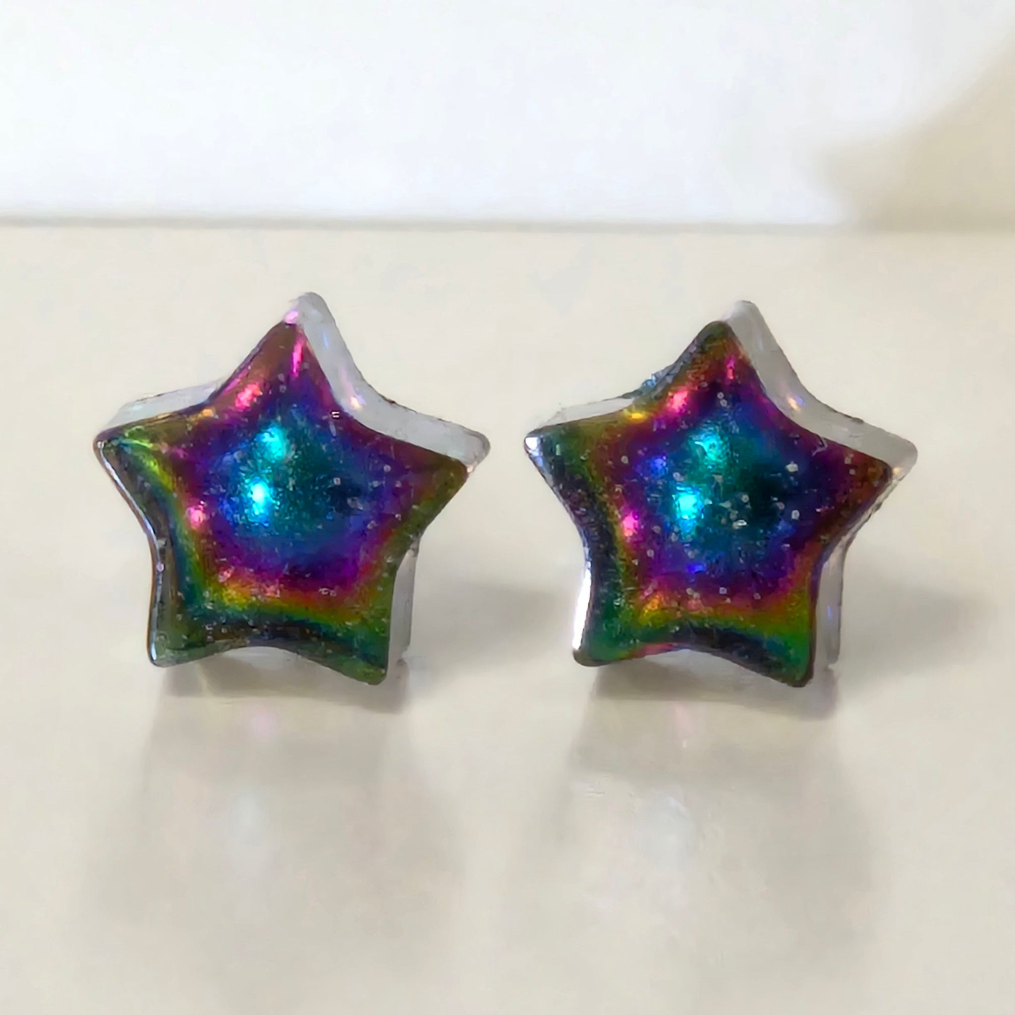OGUP (red-orange/gold/green/blue) or another rare multichrome pigment (green/blue/purple/red/bronze) encased in resin. These now also come in holographic black! Earring studs are made of stainless steel, which...